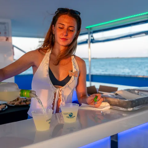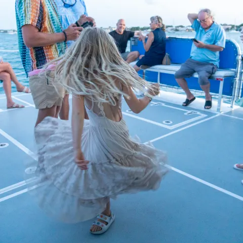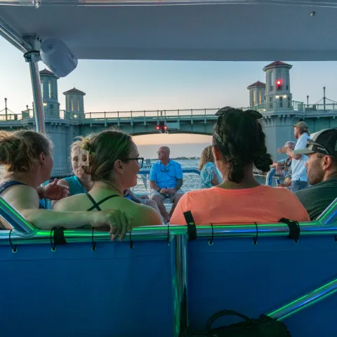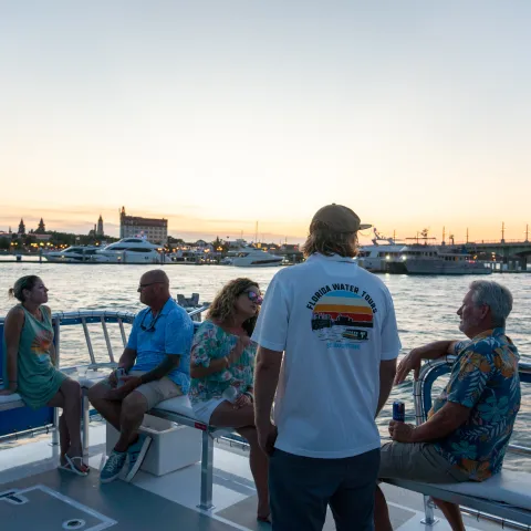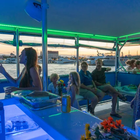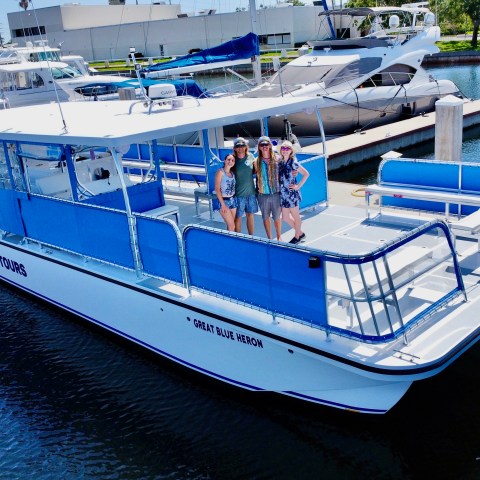 Great Blue Heron is the newest member of the Florida Water Tours fleet. It is a custom-built luxury power catamaran designed for comfort and panoramic views. With spacious seating and standing areas, it accommodates up to 49 guests, making it ideal for intimate gatherings, celebrations, or a memorable evening with loved ones.