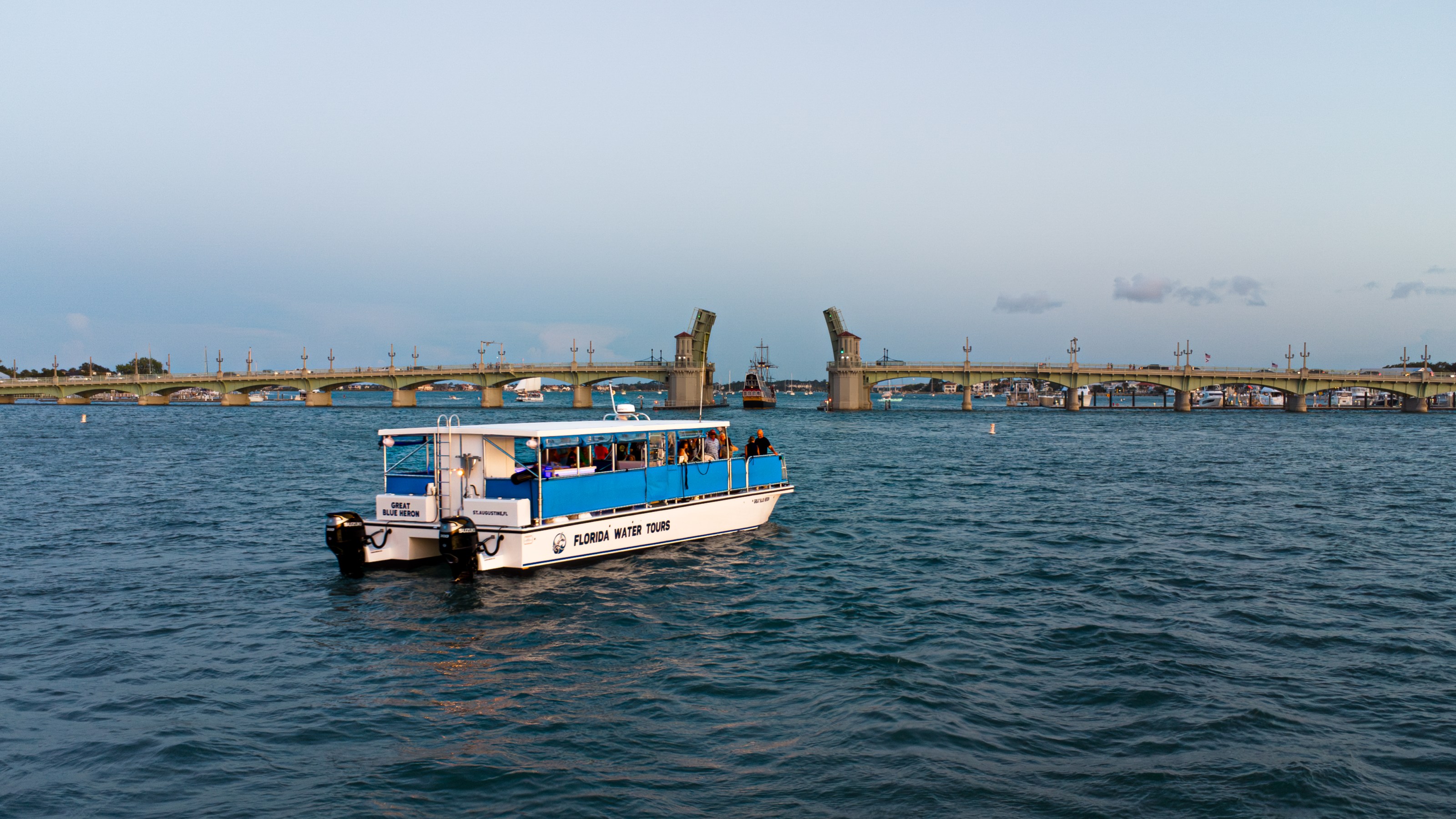 - Great Blue Heron is the newest member of the Florida Water Tours fleet. It is a custom-built luxury power catamaran designed for comfort and panoramic views.